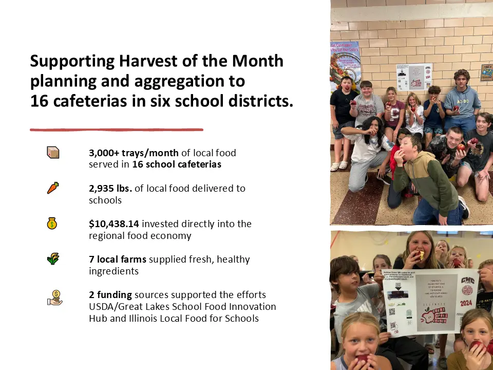 Offering programs in 13 school districts across the region with: Harvest of the Month, Indoor tower gardens, and preparation for weekly delivery of local food into the cafeterias for 2025/2026 school year.
